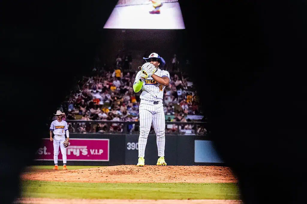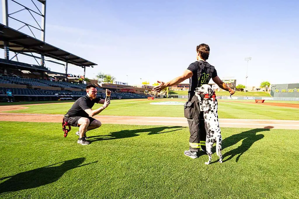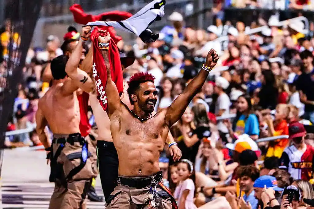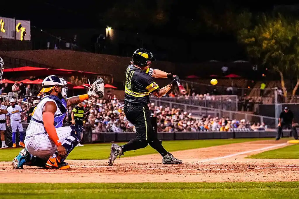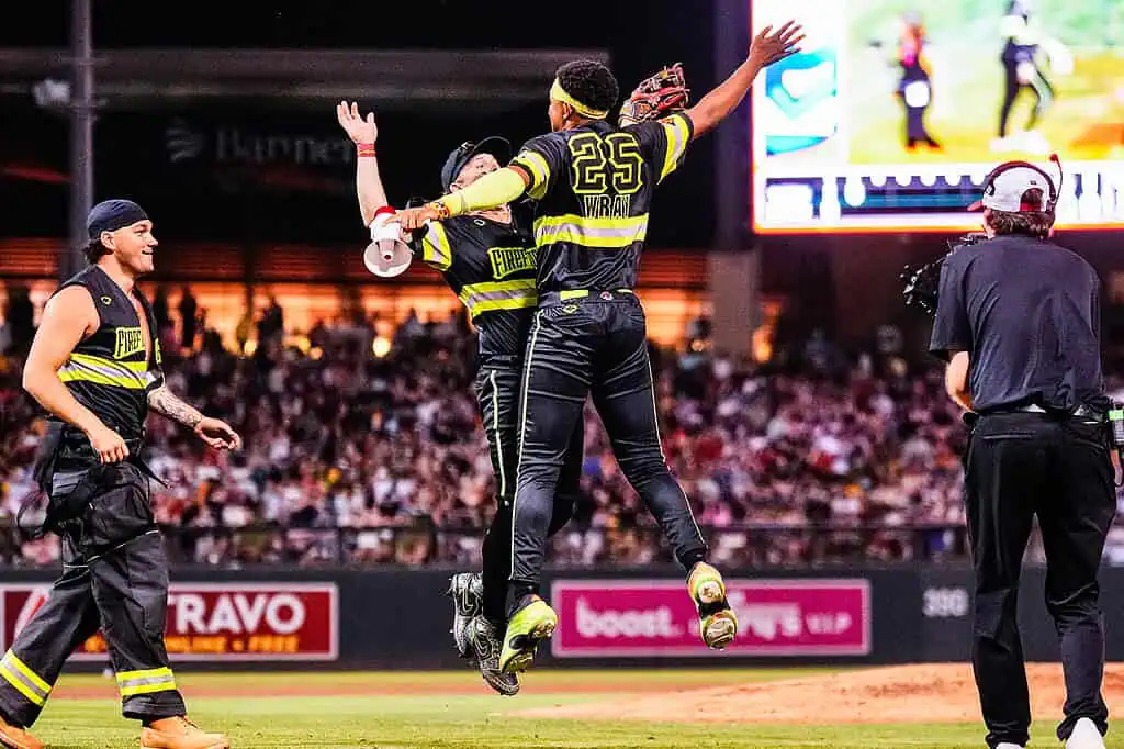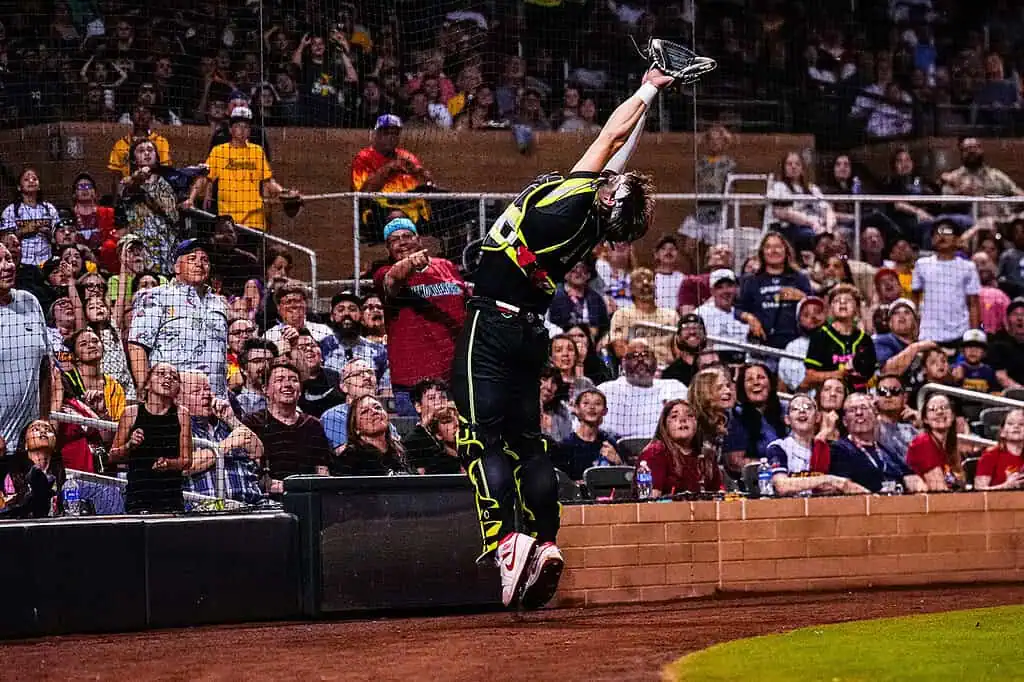 Players from Banana Ball Firefighters and the Texas Tailgaters take the field during a recent Banana Ball matchup at Scottsdale Stadium, where nonstop action, playful competition and fan-first entertainment defined the night. Known for its fast-moving pace and unconventional rules, Banana Ball blends baseball fundamentals with elements of choreography, comedy and crowd interaction, keeping spectators engaged from first pitch to final out. The Scottsdale stop showcased athleticism, teamwork and showmanship as both teams leaned into the sport’s signature blend of skill and spectacle, turning the ballpark into a lively stage for players and fans alike.
