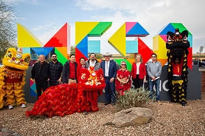 The city of Mesa recently unveiled new monument signage for the Asian District Mesa, in celebration of the district’s cultural vibrancy and economic significance. The signage is located at the southwest corner of Dobson Road and Main Street, in front of Mekong Plaza.