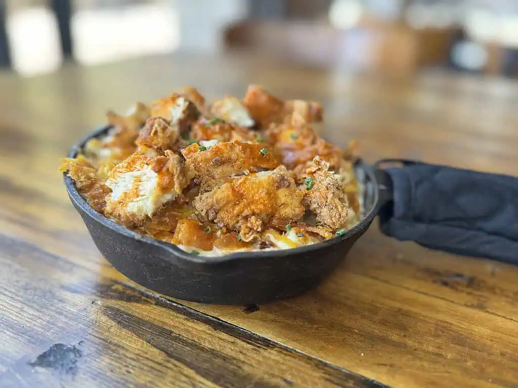 - Four-Cheese Mac & Cheese Skillet ($14) with features ditalini pasta, creamy four-cheese sauce and crushed kettle chips for the perfect crunch