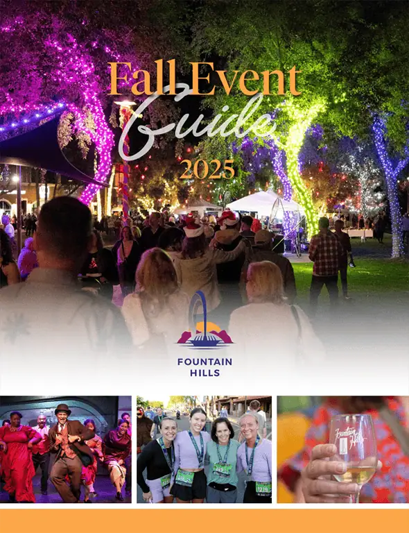 The 2025 Fall Event Guide is available online or at the Town of Fountain Hills, Fountain Hills Chamber of Commerce or surrounding businesses. For more information and to find individual event pages, visit experiencefountainhills.org.