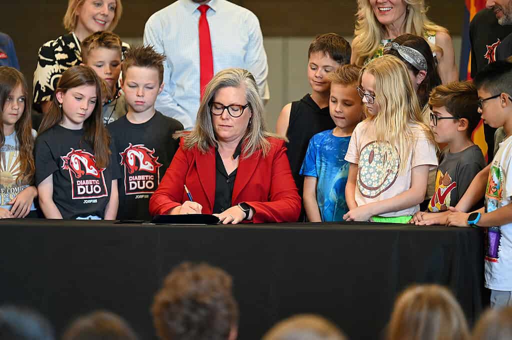 Legislation of Pingererlli and Gress signed into law at Cherokee Elementary School Staff Reports | Digital Free Press Cherokee Elementary School hosted Gov. Katie Hobbs last week during National Nurses Week — on School Nurse Appreciation Day. Surrounded by Cherokee third grade students, Gov. Hobbs signed into law House Bill 2174, legislation championed by Cherokee … Continue reading Governor Katie Hobbs signs HB 2174 at Cherokee Elementary to enhance access to glucagon for students with diabetes