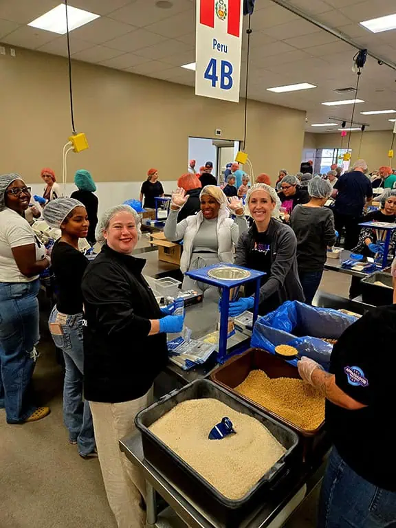 - Feed My Starving Children — Fighting childhood hunger worldwide by turning hope into meals. Volunteers packed 188 boxes, providing 40,608 meals to feed 111 kids for an entire year.