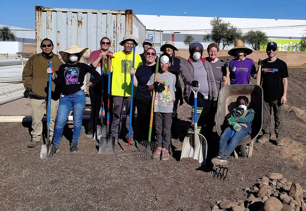 - Orchard Community Learning Center — Creating sustainable food systems for South Phoenix families. Volunteers worked on a new irrigation infrastructure by moving river rocks, spreading mulch, and forming pathways.