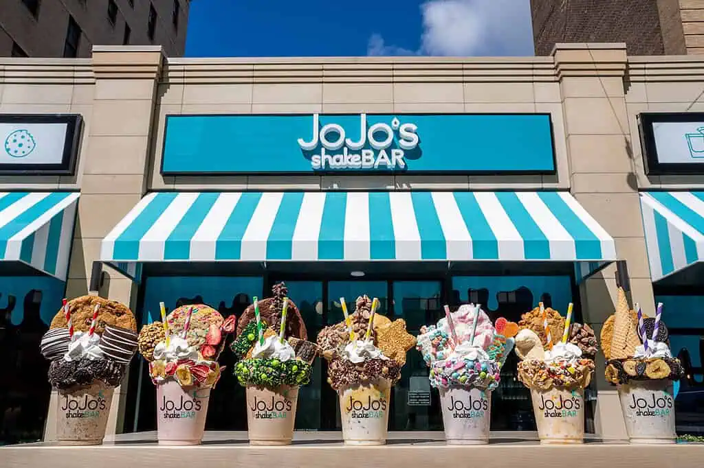 In addition to the interactive experiences, JoJo’s shakeBAR is known for its extravagant Biggie Shakes, perfect for satisfying your sweet tooth. The S’mores Biggie Shake, an indulgent treat featuring a rich chocolate shake topped with a gooey s’mores monster cookie, crunchy chocolate pretzel, chocolate s’more, and a freshly toasted marshmallow, is a must-try this summer.