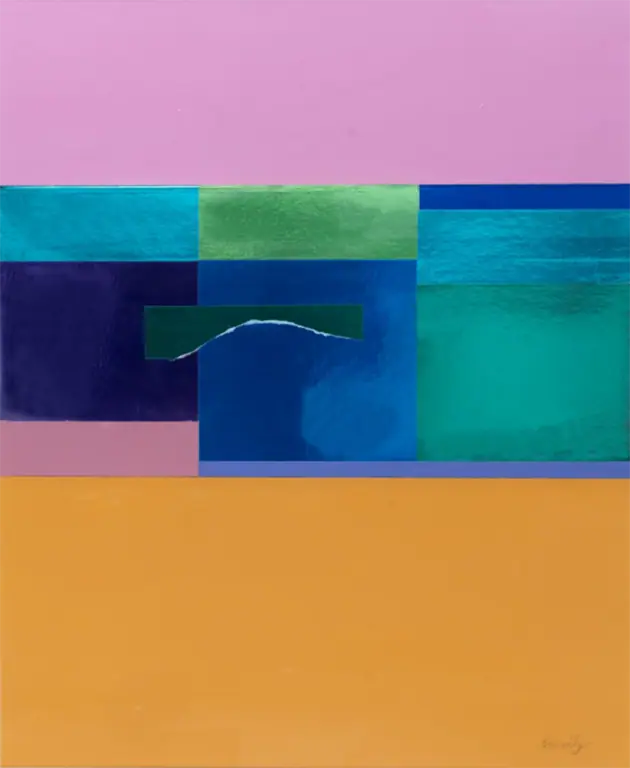 Her artistic direction shifted toward abstraction in 1969 after meeting and working with the late Arizona‑based artist Dorothy Fratt. The experience prompted a sustained focus on nonrepresentational form, resulting in a substantial body of paintings and collages.