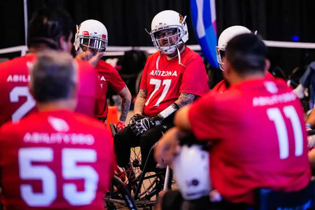 Representing their cities with pride and grit, the Arizona Cardinals Wheelchair Football Team—hosted by Ability360—welcomed fierce competition from the Buffalo Bills (Greater Buffalo Adaptive Sports), Irving Outlaws (RISE Adaptive), Kansas City Smoke (Midwest Adaptive Sports), Las Vegas Raiders (Las Vegas Parks & Recreation Adaptive), and the Los Angeles Rams (Angel City Sports). Each team brought a unique blend of talent, teamwork, and tenacity, with rosters released two weeks prior to kickoff.