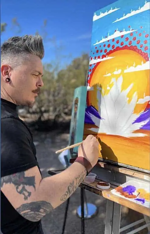 Based in Phoenix, Jesse’s dynamic murals are inspired by the colors, patterns, and landscapes of the Southwest. With over 150 murals to his name, his vivid creations add life and energy to urban settings, capturing the essence of the region.