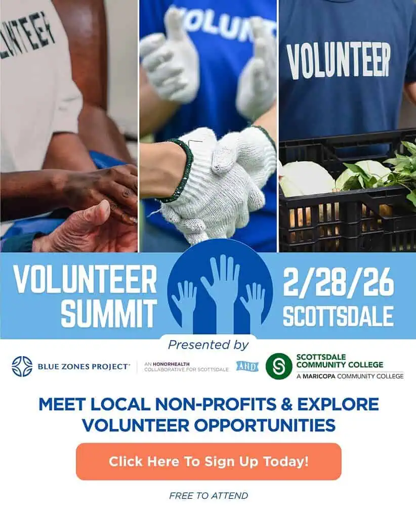 Hosted in partnership with Scottsdale Community College, the Volunteer Summit will bring together nonprofit organizations that will provide information on current volunteer needs, according to a press release.